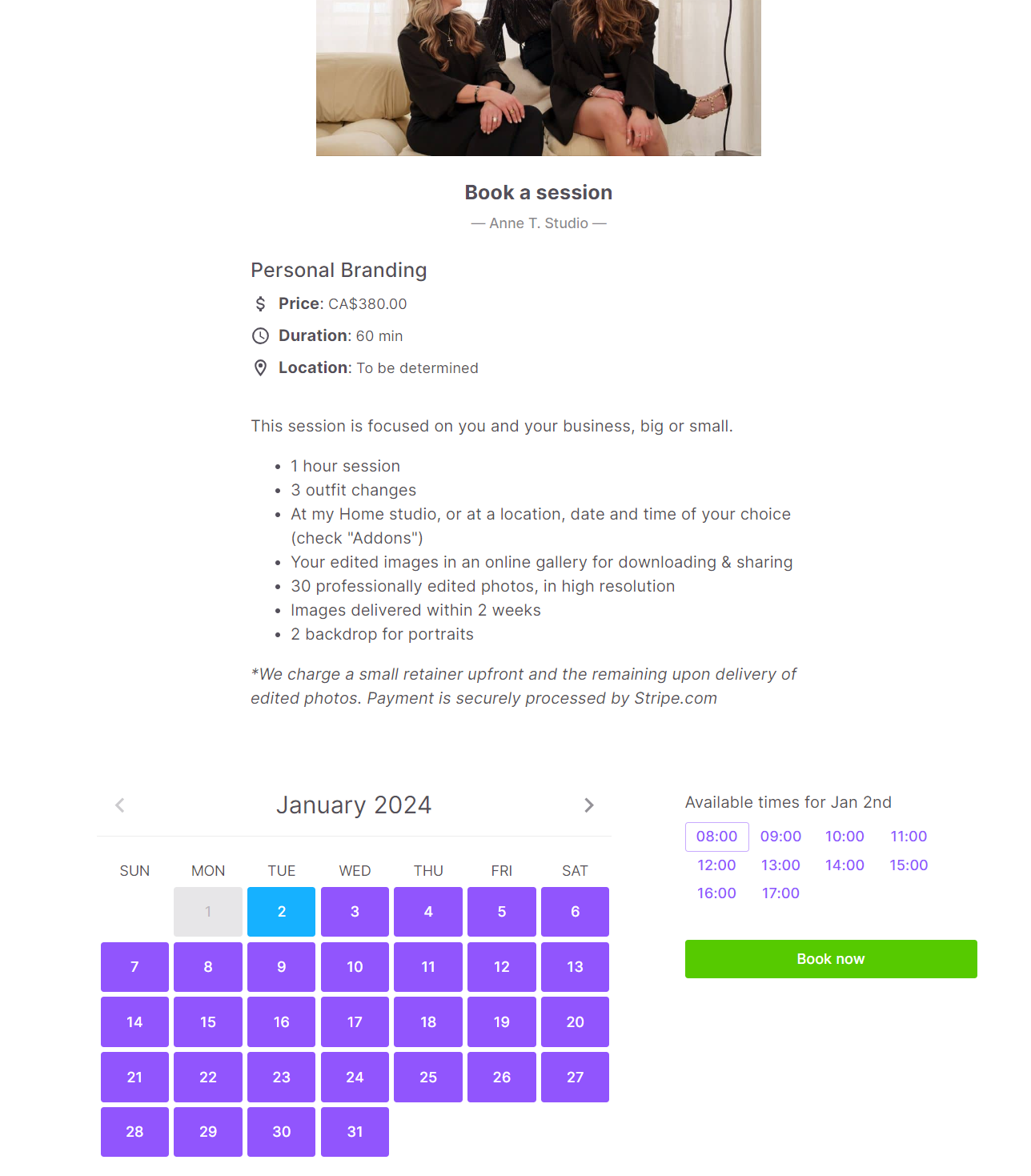 The booking page is straight to the point and easy to use. Your clients will love it.